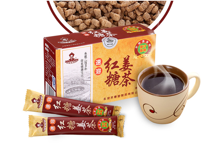 ~精選客家高山種植的無公害優(yōu)質老姜和純正紅糖為主要原料,遵循古法炮炙,并用先進的工藝及現(xiàn)代化的制藥設備提取精制而成,使其最大限度地保存了姜原有的抗風寒、健脾胃、防暈車暈船、提神醒酒的功能。紅糖與生姜的互補具有更好的保健效果。