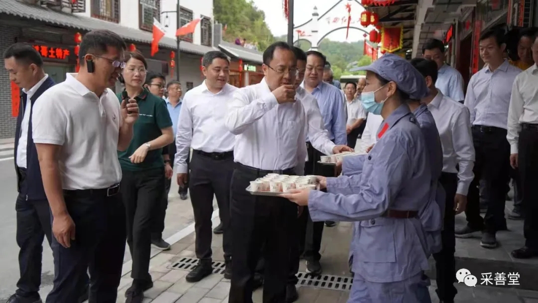 福建龍巖市委書記李建成在紅色交通線金砂紅色小鎮(zhèn)為采善堂萬應茶代言