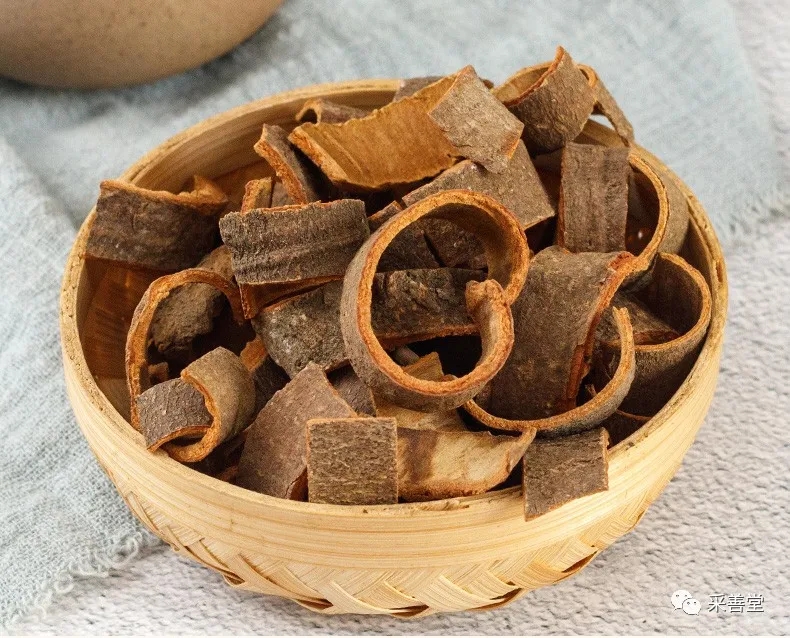 【性狀】本品呈槽狀或卷筒狀,長(zhǎng)35厘米,厚0.1~0.3厘米。外表面灰棕色,稍粗糙,有不規(guī)則的細(xì)皺紋和橫向突起的皮孔,有的可見(jiàn)灰白色的斑紋;內(nèi)表面紅棕色,略平坦,有細(xì)縱紋,劃之顯油痕。質(zhì)硬而脆,易折斷,斷面不平坦,外層棕色而較粗糙,內(nèi)層紅棕色而油潤(rùn),兩層間有1條黃棕色的線(xiàn)紋。氣香濃烈,味甜、辣。