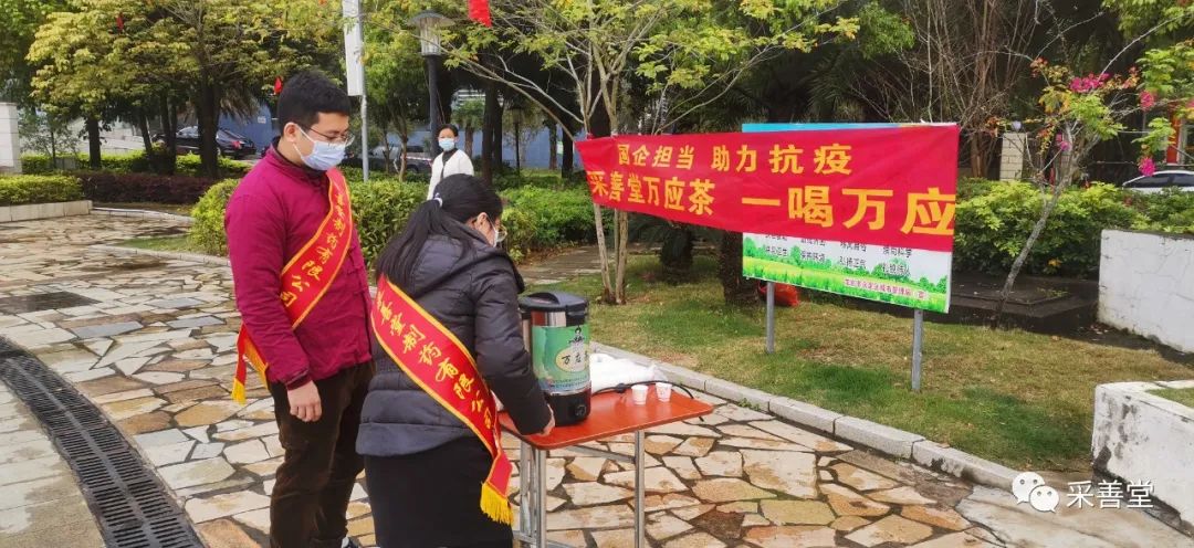 永定采善堂萬(wàn)應(yīng)茶有近三百年的悠久歷史,具有疏風(fēng)解表、化痰祛濕、健脾和胃的顯著療效,古時(shí)在抗擊瘟病方面就曾發(fā)揮其神奇功效,救人無(wú)數(shù),當(dāng)時(shí)就聲名大振,家喻戶曉。服務(wù)于核酸檢測(cè)采集點(diǎn)的工作人員、志愿者和廣大群眾通過(guò)服用采善堂萬(wàn)應(yīng)茶,能起到預(yù)防新冠病毒的作用,在綿綿細(xì)雨中,給他們?cè)偌由弦粚颖Wo(hù)傘。